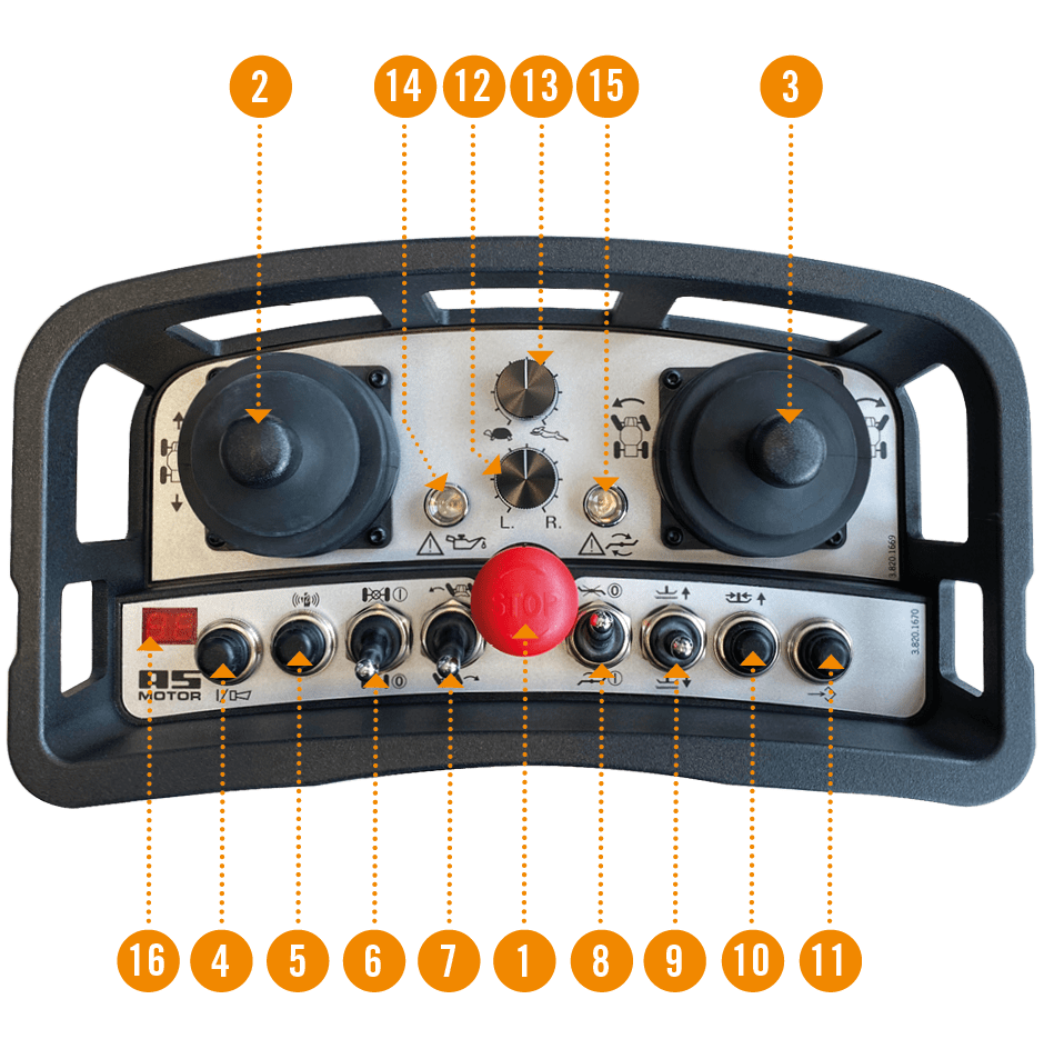 – RC mode via remote control up to max. 33° (64%) slope