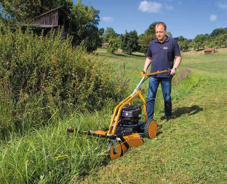 Designed to mow and mulch high grass up to 90 cm high, the AS 62 4T B&S excels on level terrain with many obstacles, such as meadow orchards. Thanks to freewheel units on both sides and movable front wheels the Allmäher is extremely agile. Ideal for private customers as well as service providers and municipalities.