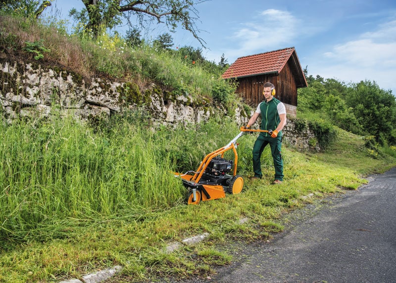 Designed to mow and mulch high grass up to 90 cm high, the AS 62 4T B&S excels on level terrain with many obstacles, such as meadow orchards. Thanks to freewheel units on both sides and movable front wheels the Allmäher is extremely agile. Ideal for private customers as well as service providers and municipalities.