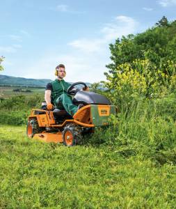 A robust and reliable ride-on mower for high grass with side discharge